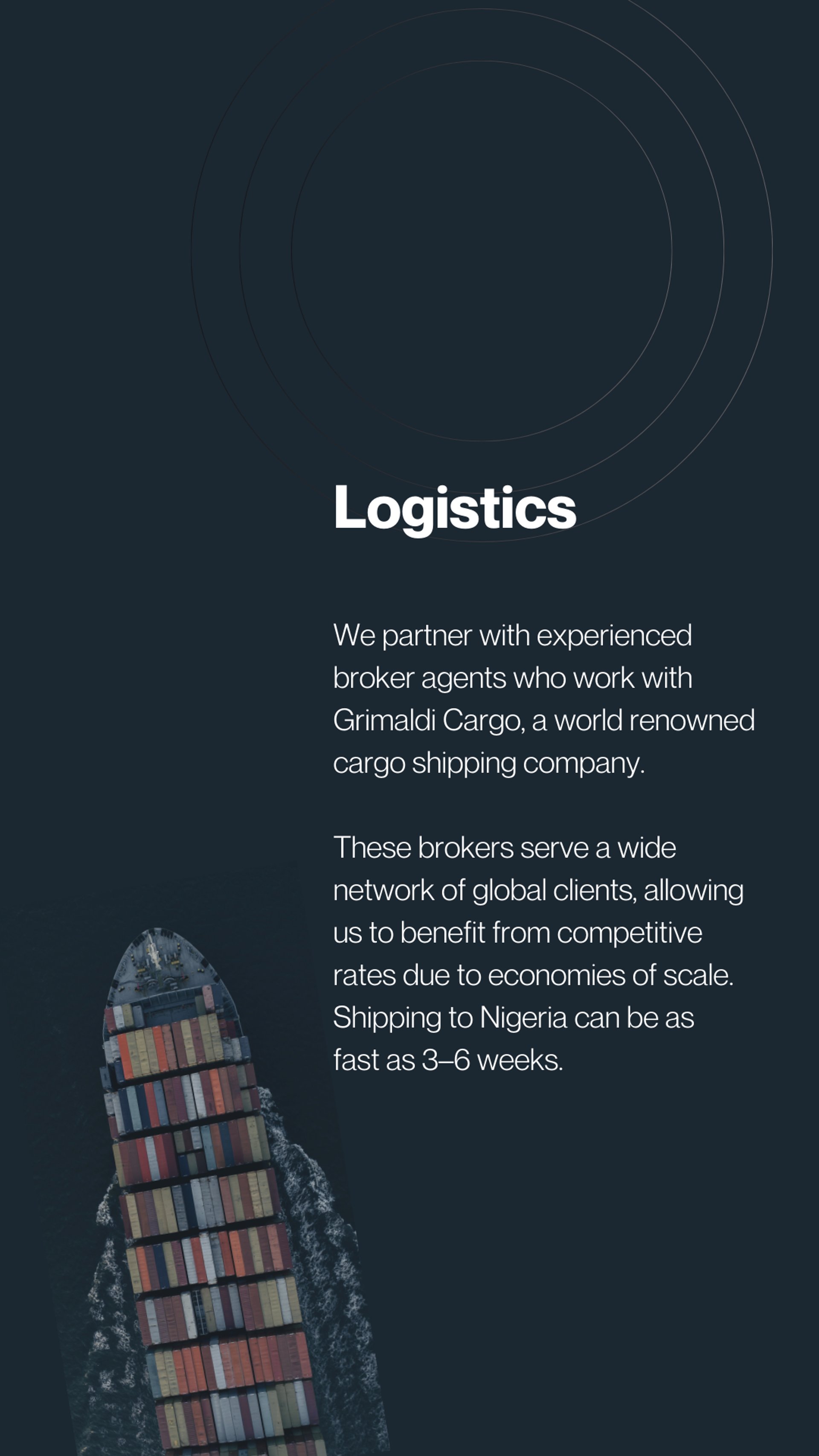 Our vision is to become the global leader in acquisition assets,equipment shipping and logistics, recognised for our commitment to innovation, customer satisfaction, and sustainable practices.
